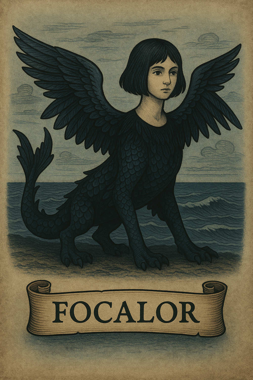 포칼로르는 처음에는 날개 달린 바다괴물 혹은 바다사자의 형상으로 나타납니다.
