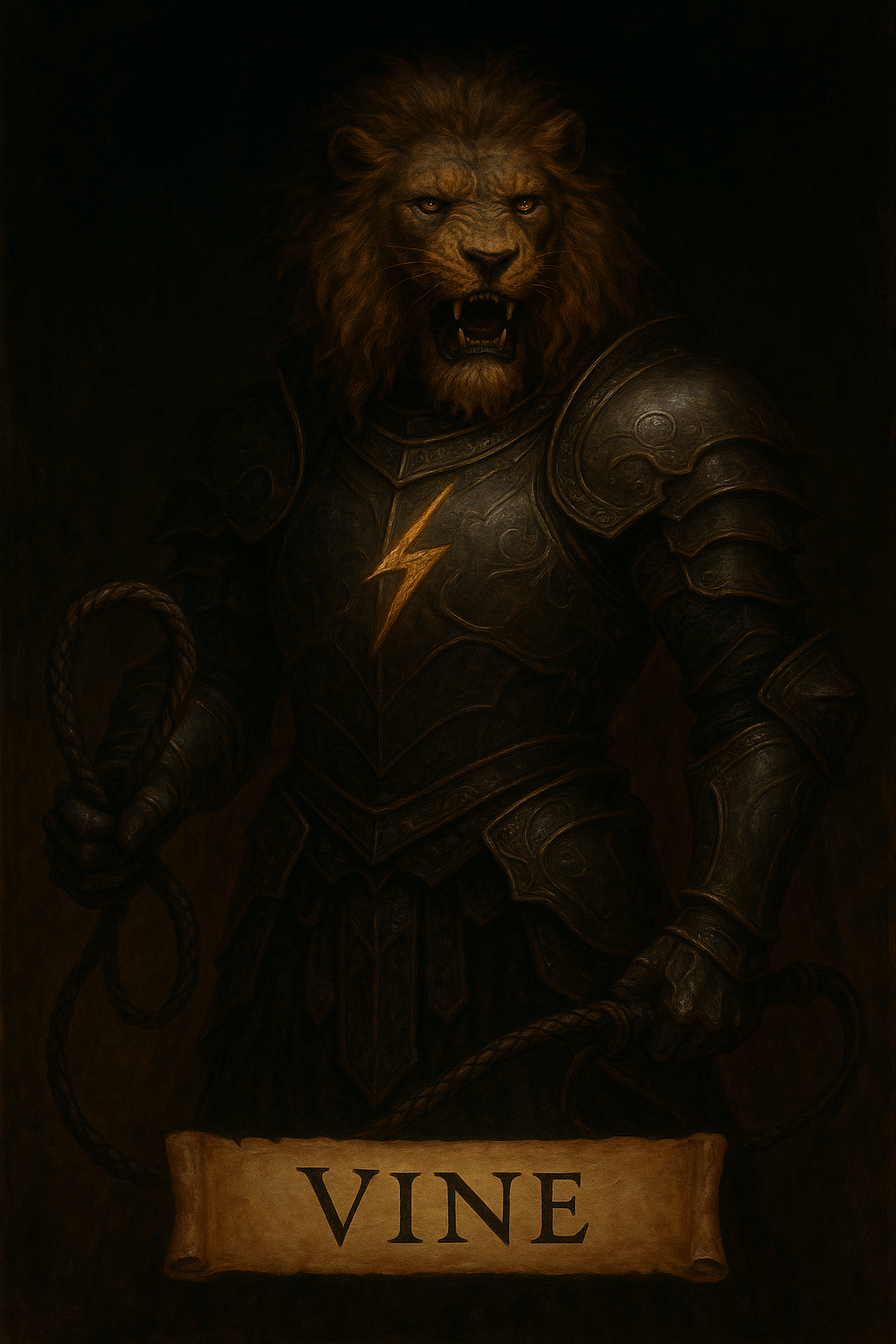 비네는 처음에 사자의 머리를 가진 전사의 모습으로 등장합니다.