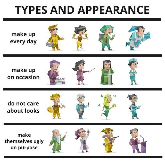 infj, intp, istp, entp : 자신의 야망을 위해 일부로 화장을 안 하고 못생긴 척 한다.