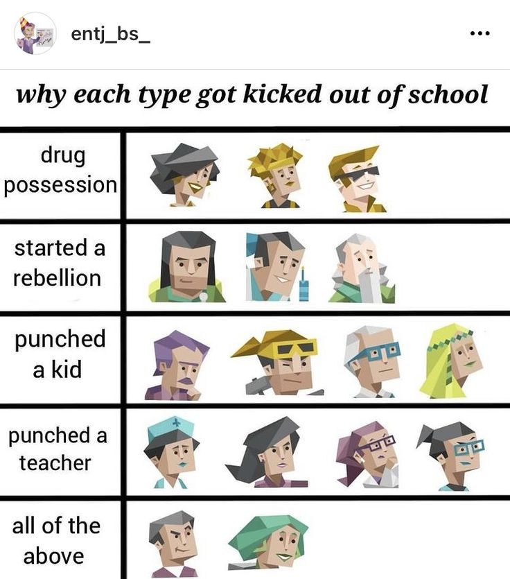 enfj, esfj, infj : 학교의 규칙이 마음에 안 든다는 이유로 반란을 일으켜서