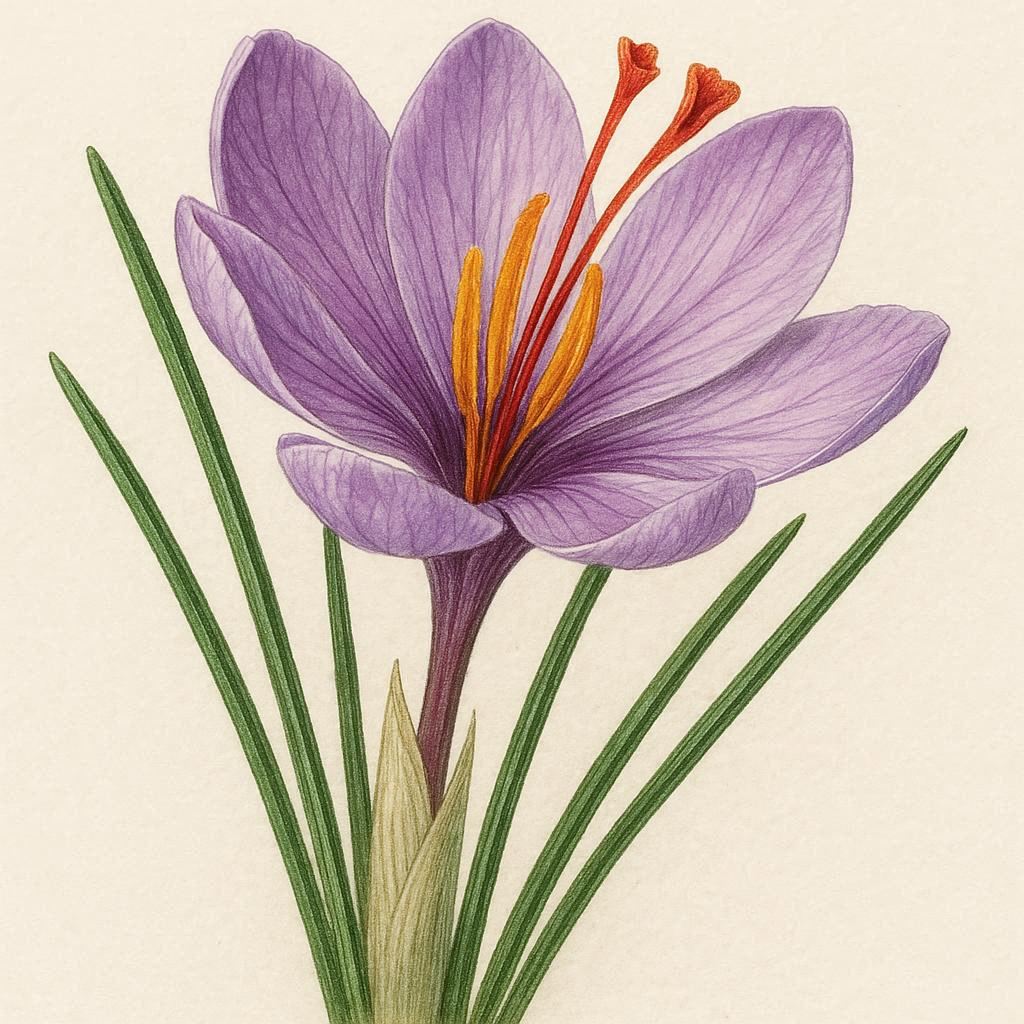 그리스 신화에서는 청년 크로코스가 사랑을 이루지 못하고 죽은 뒤 꽃으로 피어난 것이 샤프란이라고 전해집니다. 그 순수한 사랑의 이야기가 오늘날에도 꽃말에 담겨 있습니다.