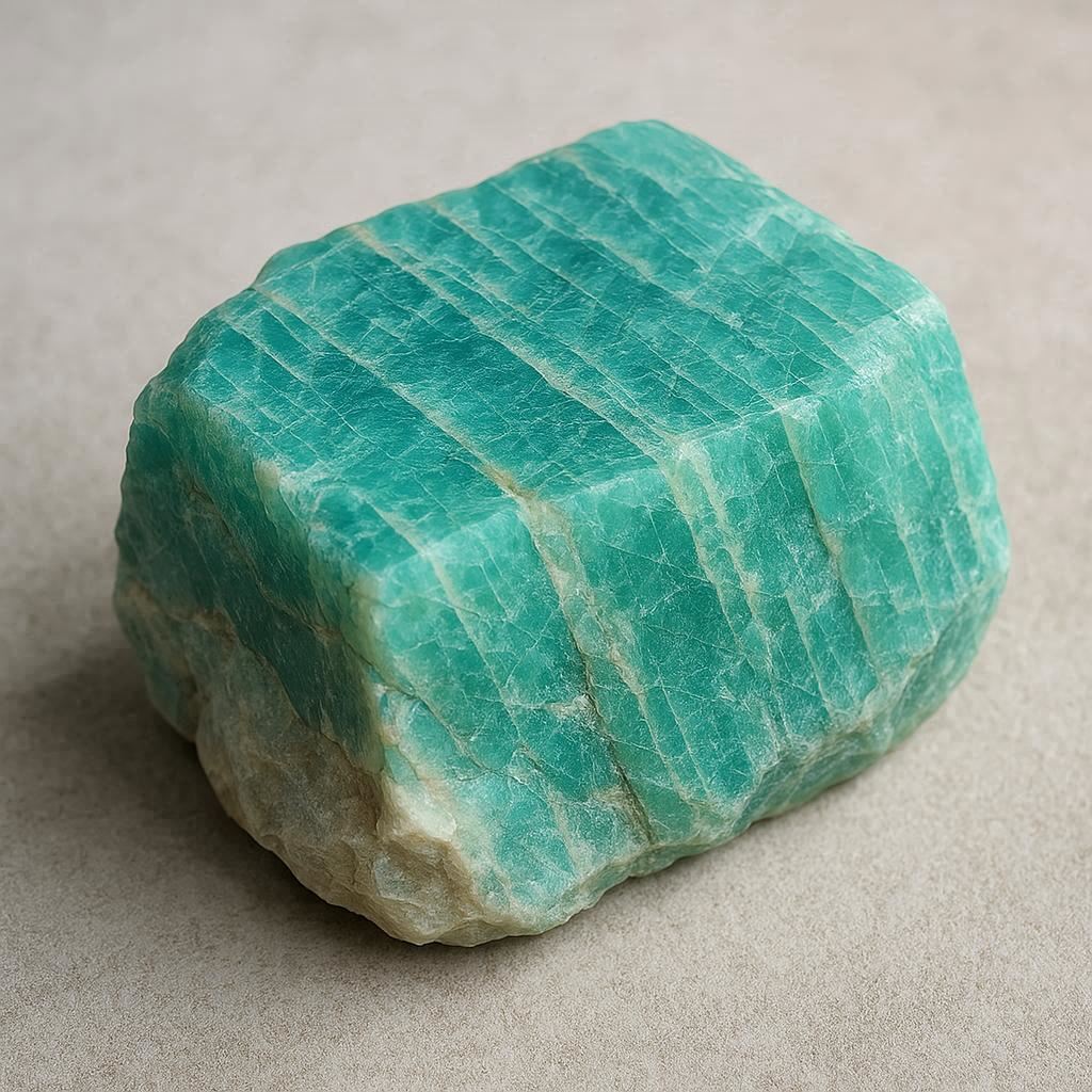 아마조나이트는 맑은 민트빛과 푸른빛이 어우러진 보석으로, 마음의 평온과 진실된 표현을 상징합니다.